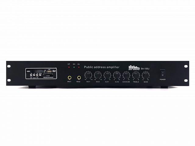 Трансляционный усилитель SKY SOUND SA-100U мощностью 100 Вт, предназначен для создания небольших систем трансляции и озвучивания с суммарной мощностью подключаемой акустики не более 100-та Ватт. Модель популярна в системах оповещения как различных открытых небольших площадей так и торговых предприятий, офисных помещений, кафе и ресторанов.