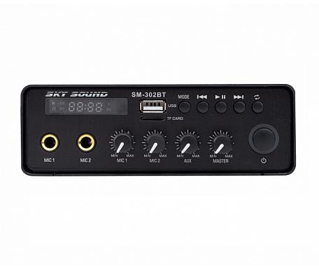 SKY SOUND SM-302BT (2*30W) - двухканальный усилитель мощности для подключения к низкоомным акустическим системам трансляции фонового озвучивания и речевого оповещения.
