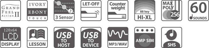 Играйте звуками этих фантастических роялей, используя уникальную первоклассную клавиатуру из дерева "Гранд Feel II", а не менее уникальная система акустической деки и новейшая технология для наушников (SHS) в электропиано поможет Вам в полной мере раскрыть всю полноту, универсальность и богатство этих звуков.