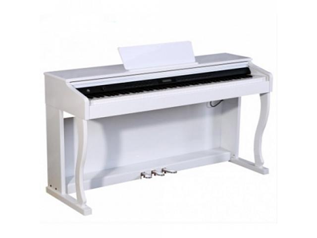 Новейшая технология чипа France Dream5 Series (5704) обеспечивает высокое качество звука по самой низкой цене, давая возможность получить превосходный опыт от игры. В комплект входит: стойка, блок питания, гарантийный талон, сертификат качества, руководство пользователя и блок педалей (сустейн, состенуто, софт), который подключается через соответствующий разъем. Так же есть разъемы USB, MIDI, аудио и для подключения наушников. Для удобства управления в данной модели предусмотрен многофункциональный LCD дисплей. Также имеется место для размещения нотных тетрадей. Пианино выполнено в белом цвете.