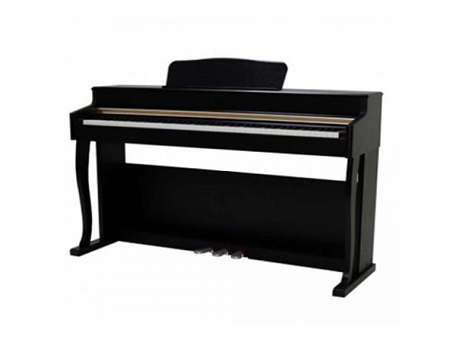 Новейшая технология чипа France Dream5 Series (5504) обеспечивает высокое качество звука по самой низкой цене, давая возможность получить превосходный опыт от игры. В комплект входит: стойка, блок питания, гарантийный талон, сертификат качества, руководство пользователя и блок педалей (сустейн, состенуто, софт), который подключается через соответствующий разъем. Так же есть разъемы USB, MIDI, аудио и для подключения наушников. Для удобства управления в данной модели предусмотрен LED дисплей. Также имеется место для размещения нотных тетрадей. Пианино выполнено в черном цвете.