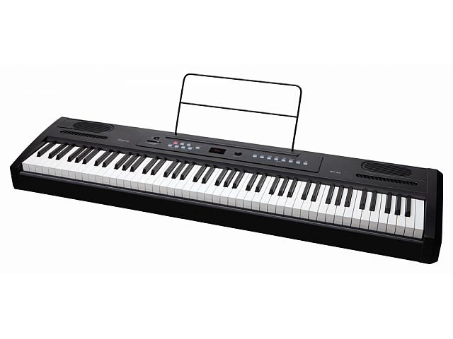 Ringway RP-25 – это стильное цифровое фортепиано в компактном корпусе из прочного пластика, оснащается 88-клавишной молоточковой клавиатурой, обладает 64-голосной полифонией. Модель поставляется в черном цвете, в комплекте идет сетевой адаптер, пюпитр и одиночная педаль.