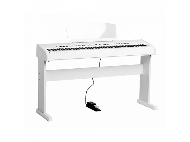 Цифровое пианино Orla Stage Concert WHT, клавиатура: 88 молоточковых клавиш с различным сопротивлением в верхнем/нижнем регистрах, полифония: 64 ноты, звуки: 20 звуков оркестровых + 10 звуков органа, 128 основных звуков + дополнительные звуки, 8 наборов ударных