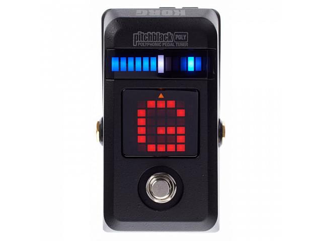 KORG PITCHBLACK POLY PB-03 – это первый педальный тюнер от инновационной компании, который имеет полифонический режим настройки, что позволяет одновременно следить за высотой всех струн. Вам нужно один раз ударить по струнам и представленное устройство сразу же покажет высоту каждой, в то время как традиционный тюнер требует извлечения звука на каждой струне по очереди. Причем гаджет автоматически определяет типы гитар и басов-гитар, поэтому не нужно указывать инструмент: всего лишь подстройте струны, которые сбились и играйте дальше. Данный тюнер отлично работает с тремоло-системами без фиксации струн, потому как исполнитель сможет отслеживать высоту звучания всех струн и вовремя подстраивать выбивающиеся из строя. Музыканту будет предоставлена шкала из бело-синих светодиодов, которая мгновенно отображает отклонения высот подстраиваемых струн, и дисплей из зелено-красных светодиодов – на нем отображается высота струн (в полифоническом режиме), а также название нот (в режиме стандартного тюнера). Еще одна отличная характеристика тюнера – это то, что дисплей имеет четыре режима: Full Strobe (мигание всей шкалы), Half Strobe (мигание половины шкалы), Regular (стандартный) и Split (гибридный режим). POLY PB-03 отличается достаточно скромными размерами и оборудован разъемом DC OUT, позволяющим использовать для других педалей свой блок питания. На него подается стандартное напряжение 9В. Другими словами перед вами – универсальный, надежный тюнер, который отличается высокой точностью настройки.