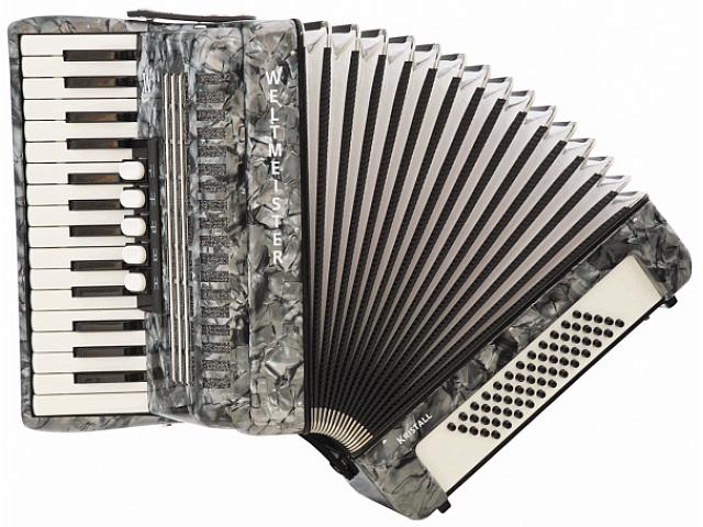 акордеон, ширина клавіш 20 мм, 30 клавіш праворуч, 60 клавіш зліва, 5 регістрів праворуч, 3 голоси праворуч, 4 голоси ліворуч, в комплекті ремені і футляр