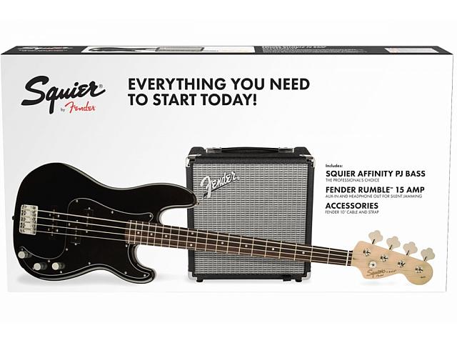 Набір для початківців бас-гітаристів. В комплекті - бас-гітара, комбік, ремінь, кабель SQUIER by FENDER PJ BASS PACK BLACK - комплект для початківців музикантів, що включає в себе бас-гітару Squier Affinity Series Precision Bass PJ з корпусом з тополі, комбопідсилювач Rumble 15, а також всі необхідні аксесуари для того, щоб можна було відразу почати грати: інструментальний кабель для підключення і ремінь для бас-гітари.