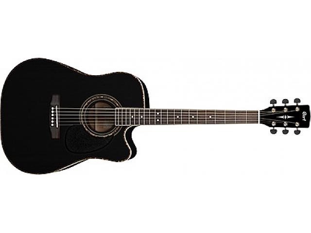 акустична гітара з п'єзодатчиком, дредноут, верхня дека з ялини, нижня дека і обичайка з червоного дерева, звукознімач і темброблок Cort CE304T, колір чорний