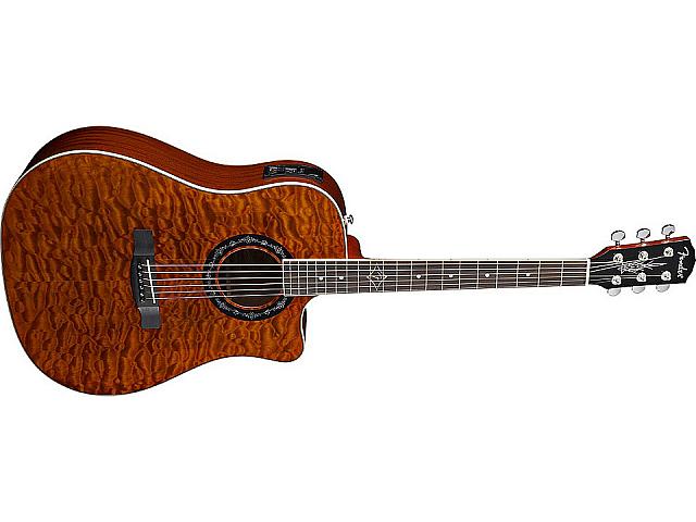 електроакустична гітара, верхня дека - клен, обичайка і задняяд дека - червоне дерево, преамп Fender, колір янтарний