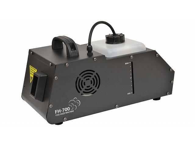 Дим машина з ефектом Фазер дим вироблений фазером, не видно в просторі, але промені від світлових приладів і лазерних проекторів малюються в ньому дуже чітко. Потужність: 700Вт. Час нагріву 2хв Витрата 200мін / 1л (30%) 120 хв / 1л (100%) Продуктивність: 3000Cu фут / хв Ємність бака 1.5л, DMX-512 Електронний контроль температури