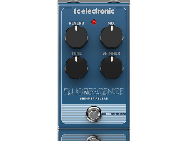 ТC ELECTRONIC FLUORESCENCE SHIMMER REVERB - педаль ефекту реверберації / шіммер. Це ефект вперше почали застосовувати такі легенди як Даніель Лануа і Брайан Іно. Він досягається при накладенні хвоста реверберації (вище на октаву) на чистий гітарний звук. Це дозволяє отримати приголомшливо об'ємне «космічне» звучання.