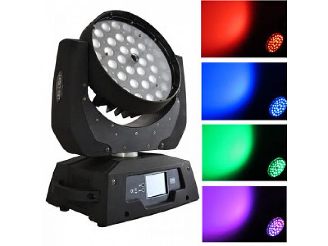 "Світлодіодна пролноповоротная голова 36 світлодіодів по 10 Вт 4-в-1 RGBW. Кут освітлення від 9 град до 60 град Ресурс світлодіода більш 50000часов Кількість DMX каналів: 15 Квітів: 256 варіантів Стробоскоп 1-25 / сек з пульс і безладним ефектом Електронний димер 0 - 100% Звукова активація, автоматичний режим і DMX pan: 540 ° tilt: 270 ° опто сенсори точної коригування. Потужність: 360 Вт Розміри: 400x300x400mm Вага 11кг "