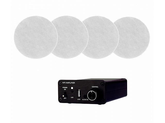 Акустичний комплект SKY SOUND BOX PRO-6004 WHITE складається з 4-х стельових динаміків SKY SOUND FLC-6W та одного підсилювача потужності SKY SOUND WIFI A-PRO (2*60W) . Комплект системи озвучування призначений для невеликих приміщень, кафе, салонів краси чи офісів тощо. (До 120 кв.м.).
