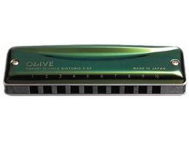 Діатонічна губна гармошка Olive. 10 отворів. Сіль мажор. Гібридний внутрішній гребінець. Розміри: 100х27х20 мм. Вага: 70 г. Виробник: Японія