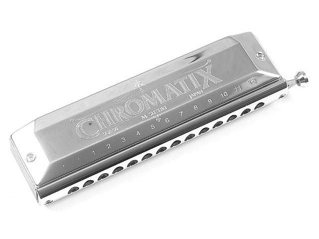 Професійна хроматична губна гармошка. 14 отворів. До мажор. 56 пластин. Латунні утримувачі пластин, пластини з фосфорної бронзи, Хромований латунний корпус. Пластиковий футляр в комплекті. Розміри: 175 * 45 * 30 мм. Вага: 227 гр. Виробник: Японія