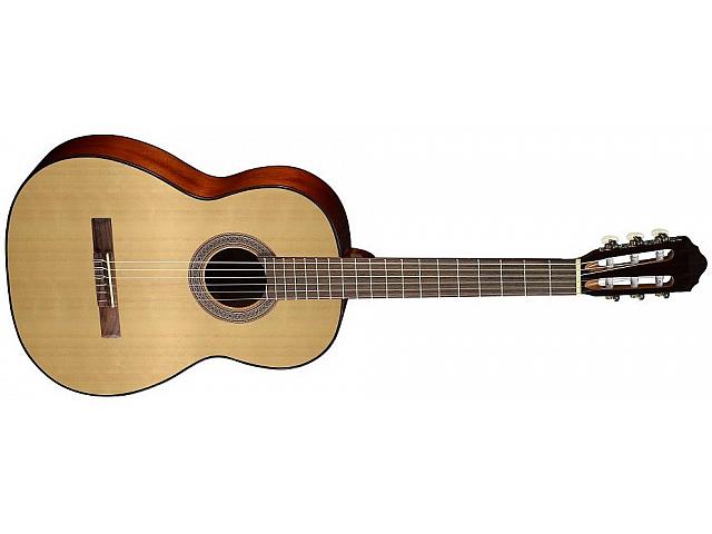класична гітара, верхня дека з ялини, нижня дека і обечайка з червоного дерева, гриф з червоного дерева, мензура 25.6 ", колір натуральний