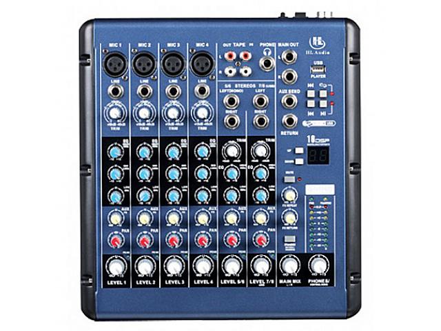 HL Аудіо SMR08 - це компактний мікшер з усіма необхідними входами, виходами, еквалайзером і вбудованим USB-медіаплеєром. Цей малюк чудово підійде для невеликих сольних концертів, караоке, проведення презентацій, вушного моніторингу під час виступів або для домашньої / мультимедійної студії.