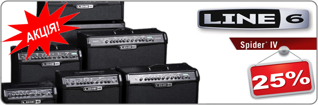 Друзі! Поспішайте придбати моделюючі гітарні підсилювачі Spider IV* від компанії Line6 зі знижкою 25%!