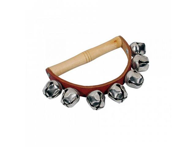 Дзвіночки ручні, з ручкою, матеріал - дерево та шкіра, 7 дзвіночків розміром 25 мм.