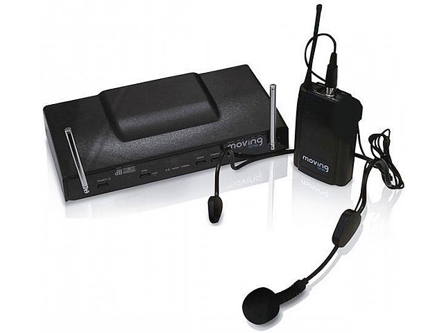 Бездротова система UHF діапазону включає настільний приймач і гарнітуру з натільним передавачем. 6 смуг від 560 MHz up to 790 MHz, шириною по 25 MHz з 98 налаштованим каналами.