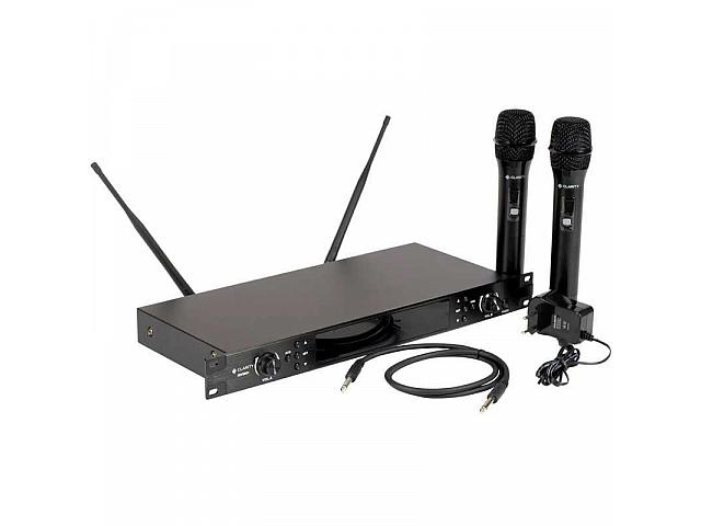 два ручних динамічних радіомікрофона - 650.9MHz та 675.5MHz, живлення від 2-х батарейок АА, 1/2 U приймач (база) - роздільне регулювання гучності каналів, роздільні симетричні XLR виходи, загальний MIXOUT вихід (JACK 6.3мм) , в комплекті кабель JACK-JACK 6.3мм 1м, і пластиковий кейс з ущільнювачем.