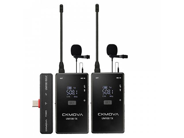 CKMOVA UM100 Kit4 – це компактна цифрова бездротова мікрофонна система, яка забезпечує високоякісний звук для користувачів практично в будь-якому сценарії. Це просте рішення для інтерв'ю та прямої трансляції в поєднанні, наприклад, із дзеркальною камерою, смартфоном або комп'ютером. UM100 Kit4 поставляється з двома передавачами (UM100 TX) та одним приймачем (UM100 RXUC), сумісним зі смартфоном на платформі Android та іншими девайсами з входом Type-C. Система має 20 каналів і автоматичне сполучення для швидкої та простої роботи. Передача даних здійснюється бездротовим шляхом від передавача до приймача на відстані 50 м. Діапазон частот бездротової мережі становить 470-510 МГц/550-590 МГц.