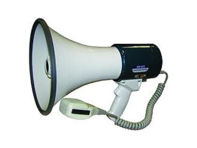 Вбудована 12с запис інформації виносний мікрофон, функція сирени Потужність: 30W Дальність: 200м Харчування: батарея розмір D 6шт * 1,5 В Вага-1,5 кг Розмір-горн 200мм довжина 330мм