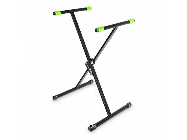 KSX 1 - це міцна, стійка підставка для клавіатури з підтримкою X і вантажопідйомністю 55 кг. Висота може легко регулюватися до 90 см за допомогою швидкого замку. Сталева конструкція з порошковим покриттям чорного кольору має посилені з'єднання для максимальної міцності і довговічні несковзкі торцеві кришки.