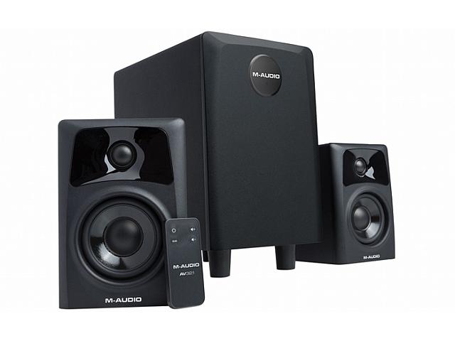 Комплект моніторів M-AUDIO AV32.1, до складу якого входить пара компактних двосмугових студійних моніторів і сабвуфера з вмонтованим 3-канальним підсилювачем. Комплект студійної акустики M-AUDIO AV32.1 забезпечує гранично "глибоке, живе, а головне повнодіапазонне звучання".
