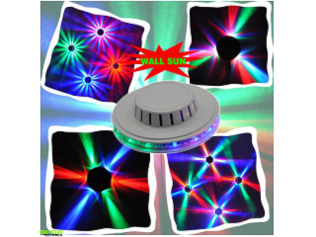 Настінний інтер'єрний прилад (світильник) Джерело: світлодіод 5мм -48шт RGB 16красних, 16сініх, 16зелених 48 кольорових миготливих по колу променів створюють плоске сонечко на стіні Режими-звукова активація і авто