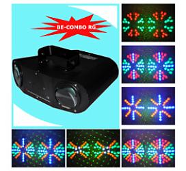 Бім-променевої лазер з променями діам. 15-20мм Джерело: червоний 100mw + зелений 50mw Зелений і червоний лазер з ефектом променів великого діамметра З малим кутом розсіювання ефект лазерних гармат Звукова активація і DMX