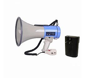 Вбудована 12с запис інформації виносний мікрофон, функція сирени Потужність: 35W Дальність: 300м Харчування: батарея розмір D 8шт * 1,5 В Вага-1,5 кг Розмір-горн 230мм довжина 350мм