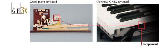 Оновлений механізм моделі GH3X відтворює так званий ефект ауслезірованія - невеликого переходу по зусиллю в самому кінці ходу клавіші. Цей ефект виникає в реальній рояльної механіці при повільному дожимання клавіші, тому що відбувається роз'єднання молоточкової фігури з штовхачем.
