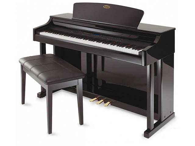 цифрове піаніно, 88 клавіш, 64-голосова поліфонія, 30 тембрів, MIDI In / Out, USB, колір чорний полірований, в комплекті стілець