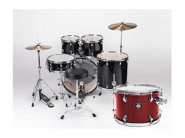 NATAL DRUMS DNA ROCK DRUM KIT - це барабани початкового рівня, які дозволили б розпочати повноцінно барабанити відразу після того, як Ви їх розпакували! Вони укомплектовані повним набором аксесуарів: в комплект входять стійки (хай-хет, стійка під малий барабан і пряма стійка під тарілку), стільчик, педаль для бас-барабана, палички, настроювальний ключ. Бочка оснащена базою під те-холдер (який теж в комплекті). В установці застосовані надлегкі лаги (Sun Lugs) з логотипом Natal, і все барабани доступний в чотирьох варіантах обробки: синьої, червоної, чорної і сріблястою пластикової обгортки (PVC).