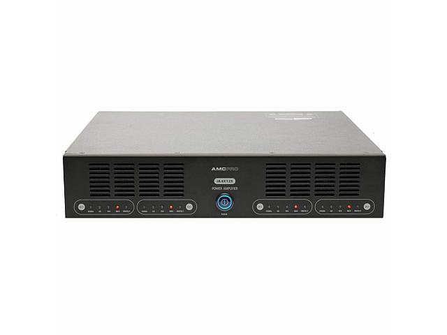 AMC iA4x125 - Підсилювач потужності, 4 канали, 4 x 125 W @ 100 V, 70 V, 4 Ω, підключення Balanced XLR, Screw terminal, 20 Hz - 20 kHz, сигнал / шум 95 dB, розмір 2U. iA4X125 є двоканальний 4х125 Вт підсилювач потужності для звукових систем на 100В, 70В і 4 Ом. Підсилювач має імпульсний джерело живлення, вихідні роз'єми Screw terminal, управління посиленням входу, режим подвійного або одного входу, селектор конфігурації виходу, фільтр HP.