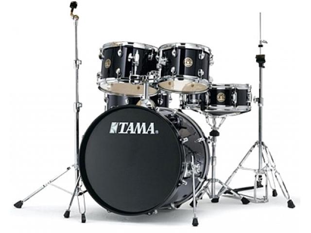 ударная установка: 5 барабанов (бочка 16x22", напольный том 13x16", томы 7x10" и 8x12", малый 5x14"), цвет черный