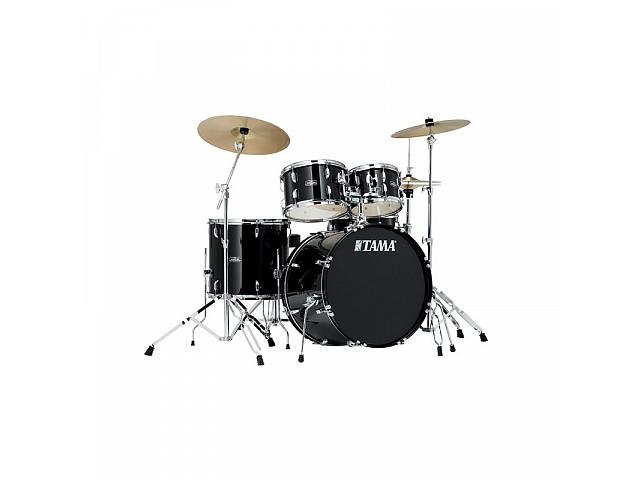 Ударная установка из 5-ти барабанов серии Stagestar, (бочка 16х22, томы 7x10, 8х12 напольный 15х16, малый 5,5х14) со стойкой для малого барабана, стойкой для хай-хэта, стойкой под тарелку, наклонной стойкой, педалью для бас-бочки, стулом для барабанщика, комплектом тарелок (14" Hi-hat, 16" Crash, 18"). Цвет - черный
