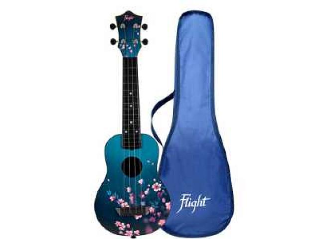 Укулеле сопрано FLIGHT TUS32 SAKURA серии Travel. Эта уникальная укулеле с принтом цветущей сакуры оснащена держателем ремня и усилена струнами Aquila Sugar. Эта стильная укулеле отличается своим особым дизайном среди всей линейки FLIGHT Travel.