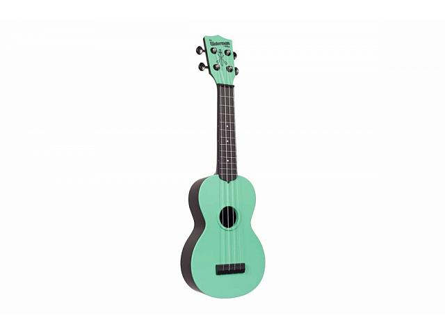 WATERMAN SEAFOAM GREEN MATTE SOPRANO UKULELE — надежный и водостойкий инструмент. Он отлично подходит для школ и его легко держать в чистоте. Укулеле оснащено высококачественными никелированными колками открытого типа и струнами Aquila Super Nylgut.