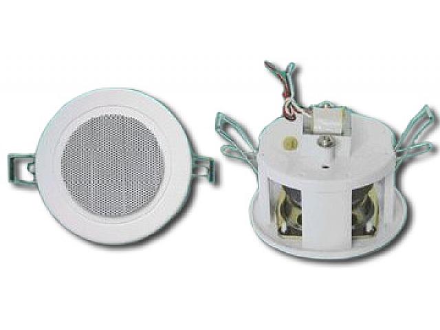врезная акустическая система, мощность 6 Вт, частота 120 Гц-20 кГц, чувствительность 87 Дб, питание 100 В, материал ABS, отверстие для монтажа D95 мм
