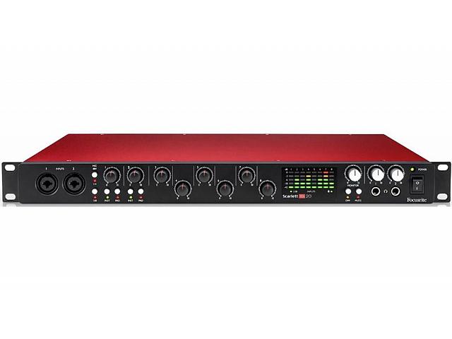 Focusrite Scarlett 18i20 NEW - это аудио интерфейс USB 2.0 (18 входов и 20 выходов), высокого качества, 8 микрофонных предусилителей и частотой дискретизации 24-бит/96кГц. Обладает большим количеством входов и выходов для микширования или же записи, он с легкостью может решить все задачи в вашей студии.