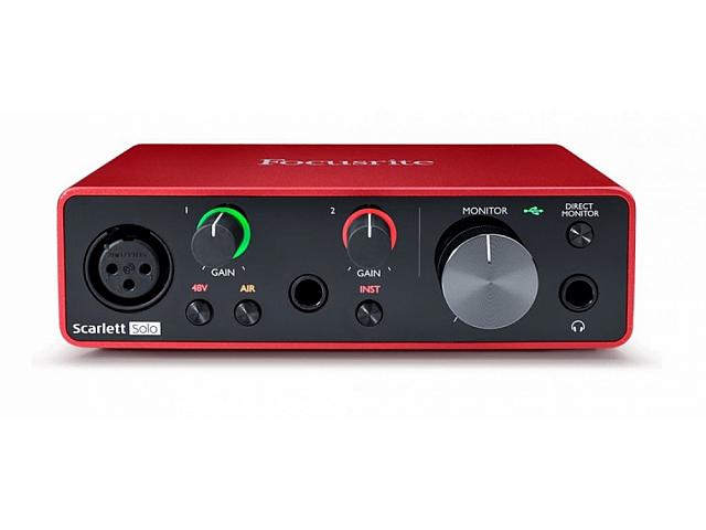 Focusrite SCARLETT SOLO 3nd gen – это компактный аудиоинтерфейс, который используется многими популярными гитаристами современности. С ним вы можете записывать свою собственную музыку в любом месте. Все что нужно – подключить к нему гитару и микрофон. Поддерживает функцию Quick Start, позволяющую осуществлять запись и воспроизведение треков за несколько минут. Чтобы с головой погрузиться в творчество, у аппарата есть инструментальные входы, микрофонные преампы и фирменные Gain Halos.